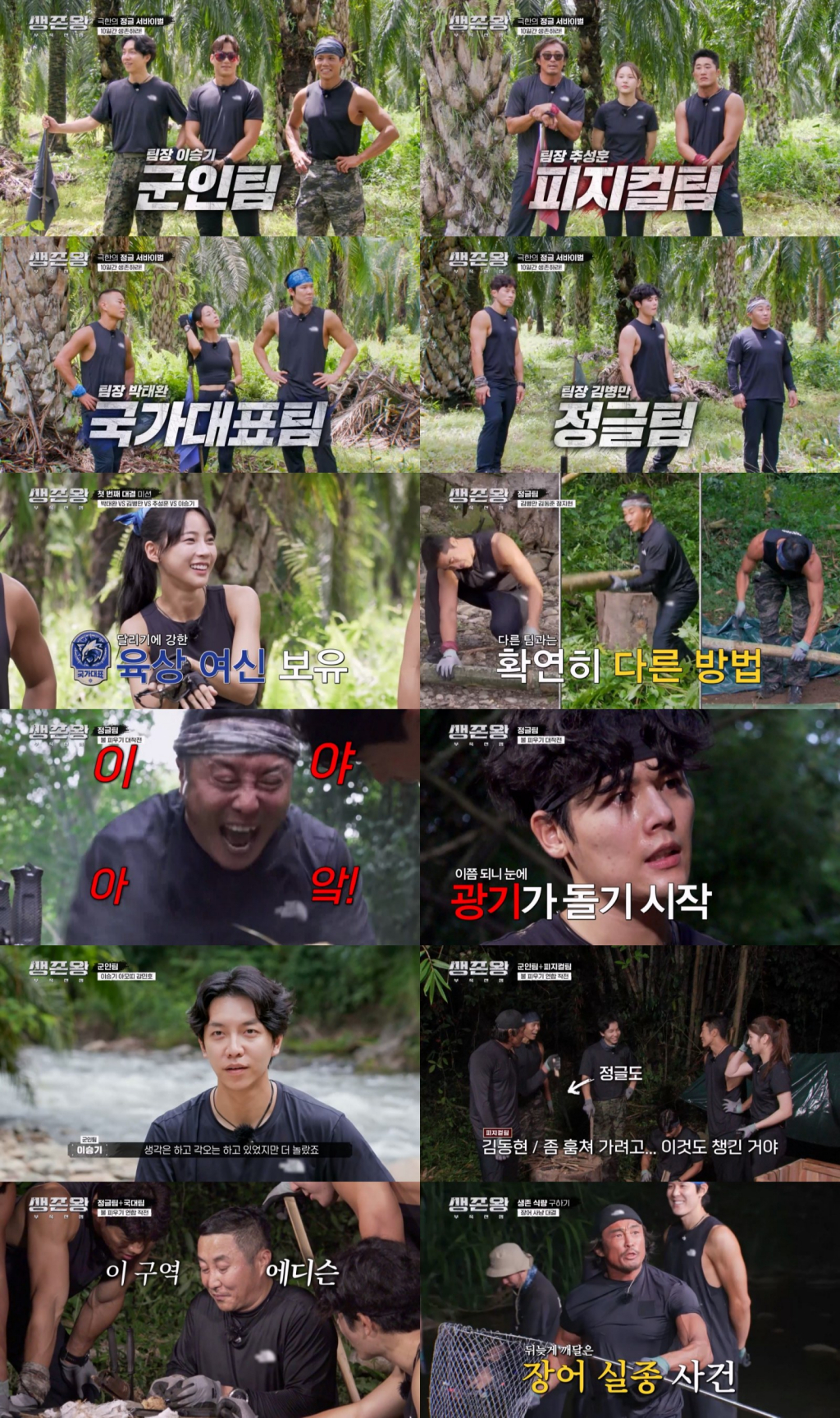 '생존왕 : 부족전쟁'에서 정글과 피지컬, 군인, 국가대표 4팀이 생존을 위한 무한 경쟁에 나섰다.
