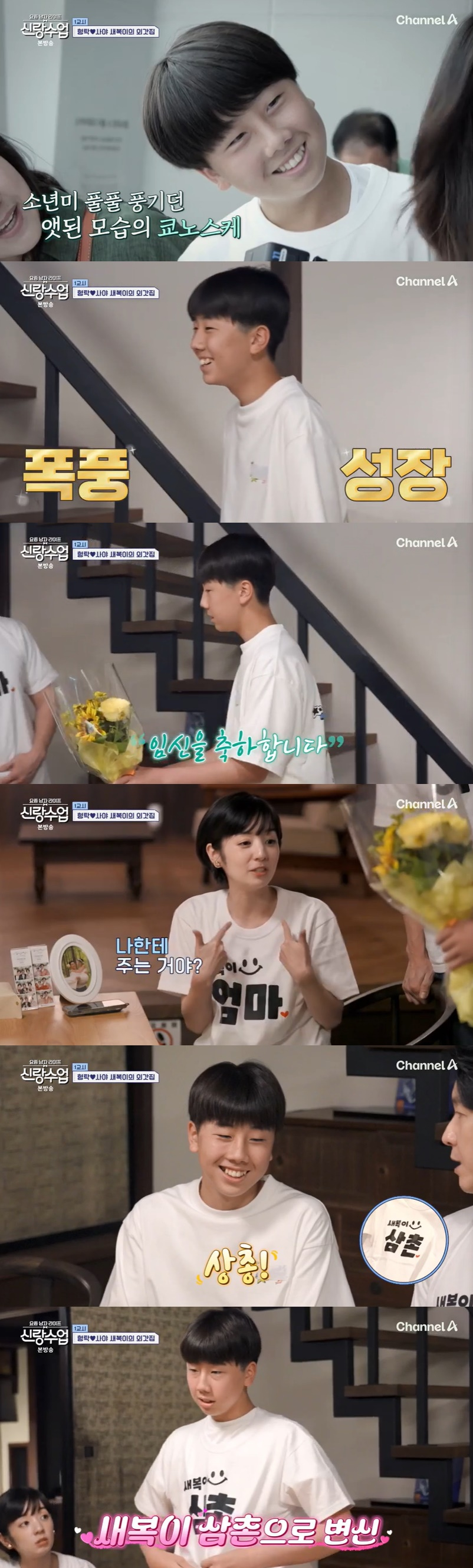 사야의 동생은 사야에게 "임신 축하해"라며 꽃다발을 건네줘 감동을 자아냈다. 심형탁은 장인, 장모에 이어 처남에게도 한글로 '새복이 삼촌'이라 적힌 티셔츠를 선물하고 가족사진을 찍었다.