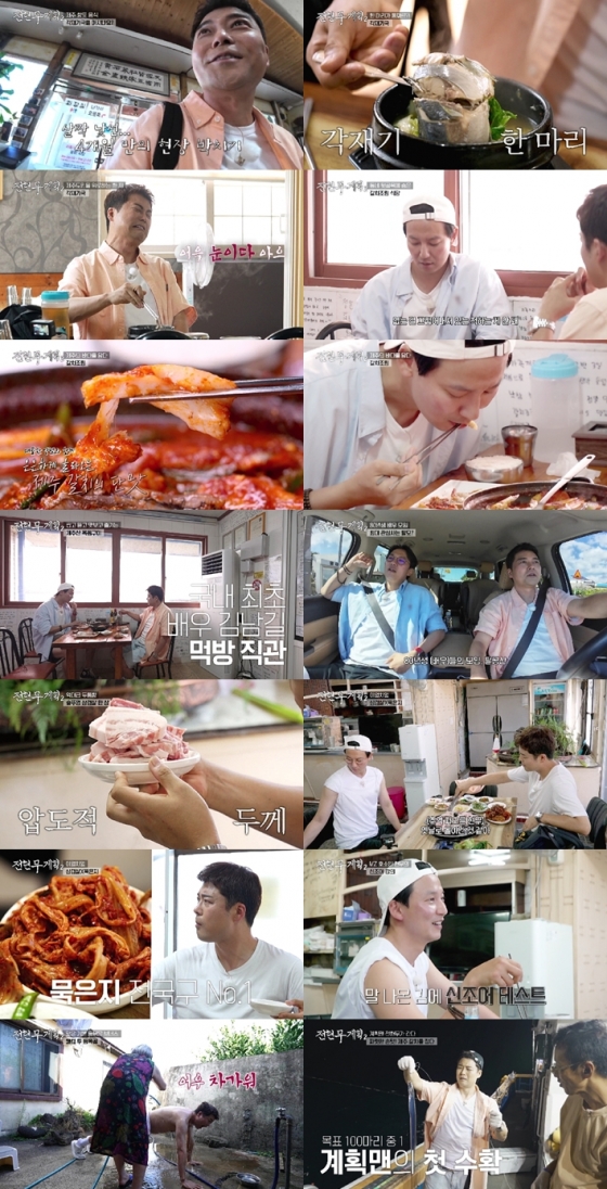 순식간에 음식을 올킬한 김남길에게 전현무는 "더 먹을 수 있지?"라며 "다음으로 갈 곳은 역대 '전현무계획' 중 제일 독특한 곳"이라며 운전대를 잡았다. 이동하는 차 안에서 김남길은 절친 사조직인 '팔공산'에 대해 언급했다. 그는 "80년생 배우들의 모임인데, 나와 진구, 김성균, 박지환, 조정석, 윤경호, 김대명, 양준모가 '팔공산' 멤버다"라고 밝힌 뒤, "요즘엔 모이면 건강 관련 이야기를 한다"고 해 전현무를 빵 터지게 만들었다. 이윽고 두 사람은 관광객은 전혀 찾아볼 수 없는 작은 마을의 한 노포에 들어섰다. 노포집 사장은 "에어컨도 안 나오는 곳에 왜 왔어?"라고 쿨하게 인사하더니, 압도적인 두께의 삼겹살과 묵은지를 내왔다. 무더위에 에어컨도 없이 솥뚜껑 위에서 고기를 굽기 시작한 두 사람은 땀을 뻘뻘 흘리며 삼겹살을 먹었고, 전현무는 "여기 묵은지가 대한민국 1등!"이라며 "방송에 내지 말까? 너무 좋다"고 극찬했다. 김남길도 "묵은지가 엄청 충격적이네"라고 맞장구쳤다.