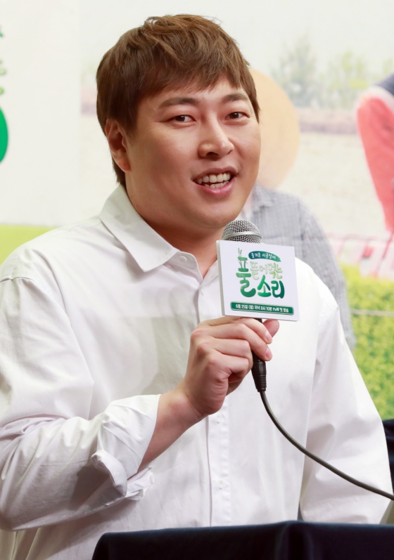 개그맨 이진호, 중딩농부 한태웅, 송하윤, 김숙이 25일 서울 마포구 상암동 스탠포드호텔에서 열린 tvN 새 예능 '풀 뜯어먹는 소리' 제작발표회에 참석해 포즈를 취하고 있다. /사진=임성균 기자 tjdrbs23@