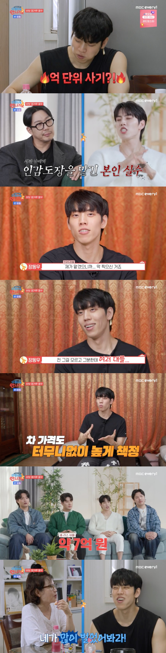 이에 대해 장동우는 "21살, 22살 때였다"며 "차동차를 구매해 준 딜러에게 인감 도장을 맡는데 그 사람이 (인감 도장을) 막 쓴 거다. 차 가격을 본인 마진으로 남겨서 차액을 챙겼더라. 그걸 모르고 그 사람한테 여러 대를 샀다"고 설명해 충각을 자아냈다.