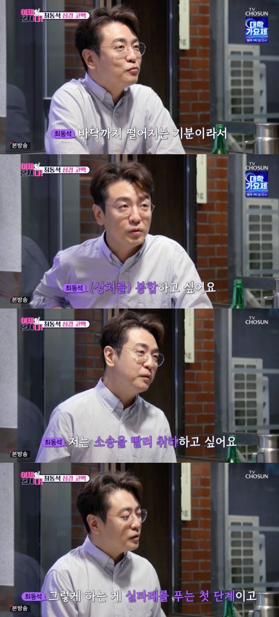 최동석은 "앞으로는 (상처를) 봉합하고 싶다. 마음으로는 빨리 좋게 끝내고 싶은데 이대로 끝내면 제가 이상한 사람이 되지 않을까 싶다"고 걱정했다.