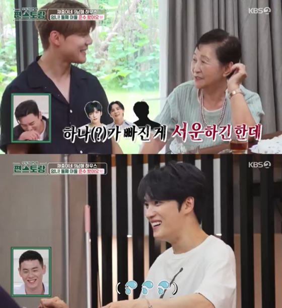 김재중 어머니는 "그래도 너희 둘은 성공했잖아. 근데 하나가 빠진 게 서운하긴 한데"라고 말해 모두를 놀라게 했다. 이에 김재중과 김준수는 당황하며 멋쩍게 웃었다. 김재중 어머니는 "둘이라도 열심히 하고 그리고 빨리들 장가들 들어"라고 말했다.