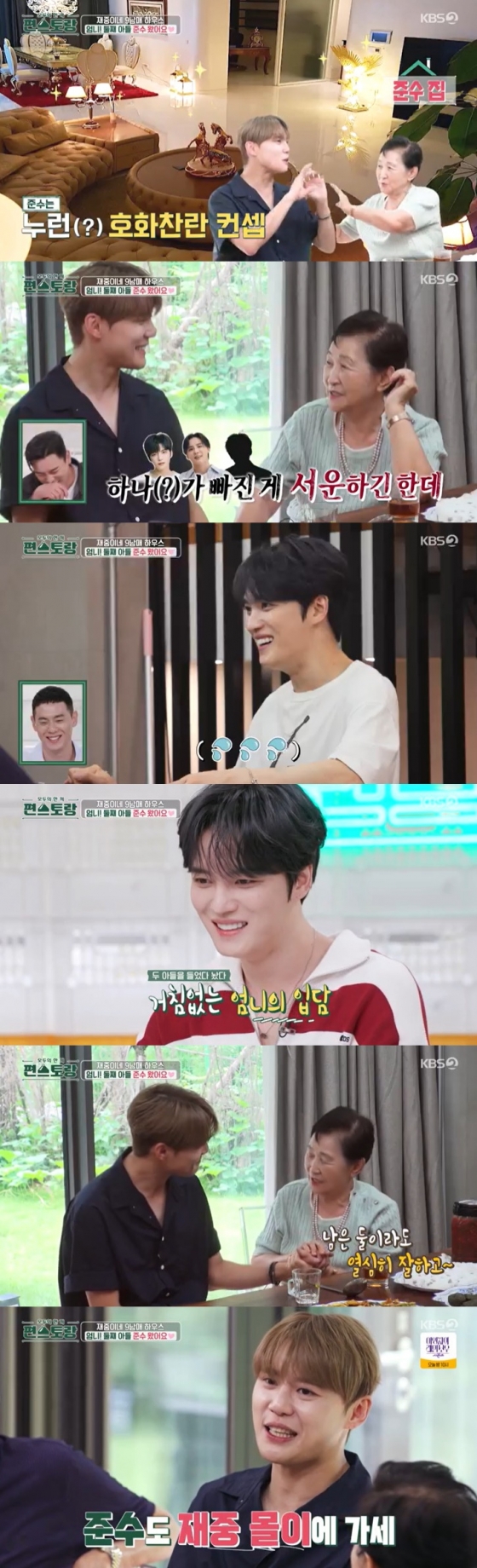 김재중 어머니는 김준수에게 "잠실 꼭대기 아직도 거기 살어? 안 어지럽냐. 호화찬란하게 살더라고"라고 물었고 김준수는 웃음을 터뜨렸다. 김준수는 잠실 시그니엘에 산다고 밝힌 바 있다.