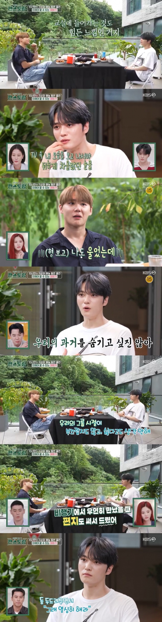 이후 김재중과 단 둘이 식사 시간을 가진 김준수는 김재중과 15년 만에 지상파 방송에 출연한 소회로 "학생이 학교에서 공부하는 것과 똑같은 건데 우리에게는 교실에 들어가는 것도 힘든 느낌인 거다"라고 털어놨다. 김재중은 "처음엔 어안이벙벙한 거다. 방송 속 내 모습을 보고 눈물이 났다"고 했고, 김준수도 "나도 울었다. 방송 보면서 나도 너무 뿌듯했다"고 했다.
