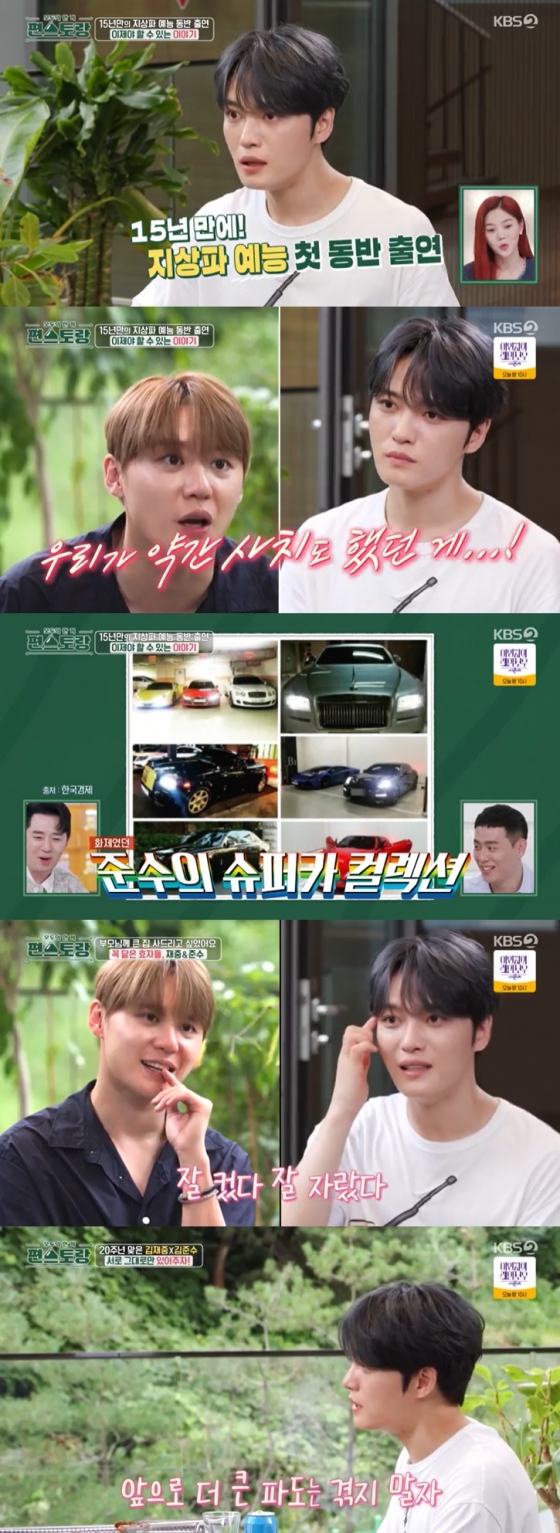 18일 방송된 KBS 2TV '신상출시 편스토랑'에서는 김재중과 김준수가 15년 만에 지상파 방송에 함께 출연했다.