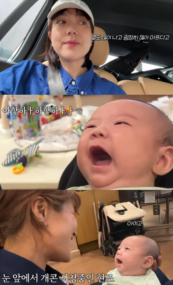 이에 이은형은 "어제 밤새 검색했다. 방을 서늘하게 해주고 가제 수건을 적셔서 닦아 주라고 하더라"라고 읊었다. 이후 예방접종을 무사히 끝내고 집으로 돌아가 던 길에 현조는 '방긋' 미소 짓기도.