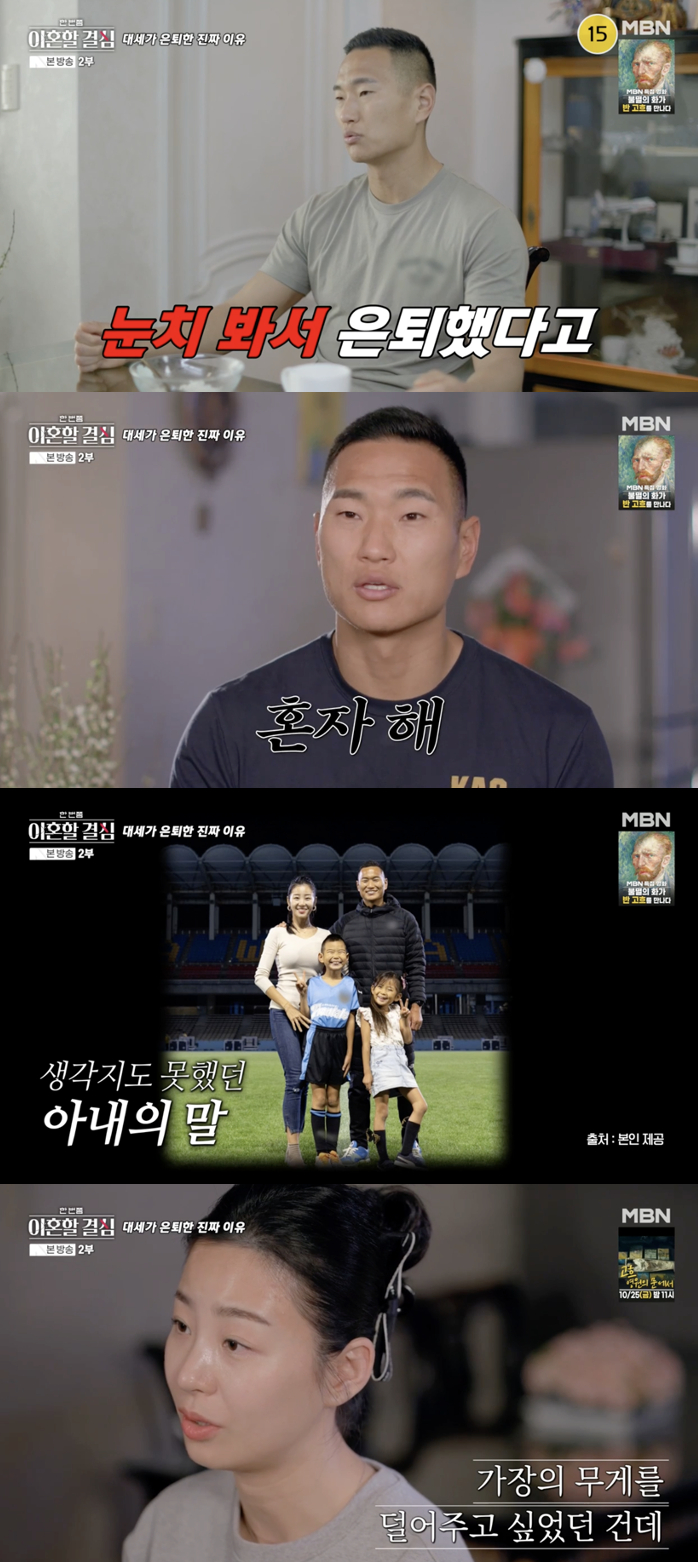 그러나 이를 들은 정대세는 착잡한 표정으로 "나도 나대로 포기한 게 많아"라며 자신의 입장에서 이야기를 시작했다. 그는 아내와 장모님의 눈치를 보다가 결국 38세에 은퇴를 결심했다고 밝혔다. 그러면서 "3부 리그, 4부 리그를 가더라도 돈을 받으면서 축구를 하고 싶었다"라고 덧붙였다.