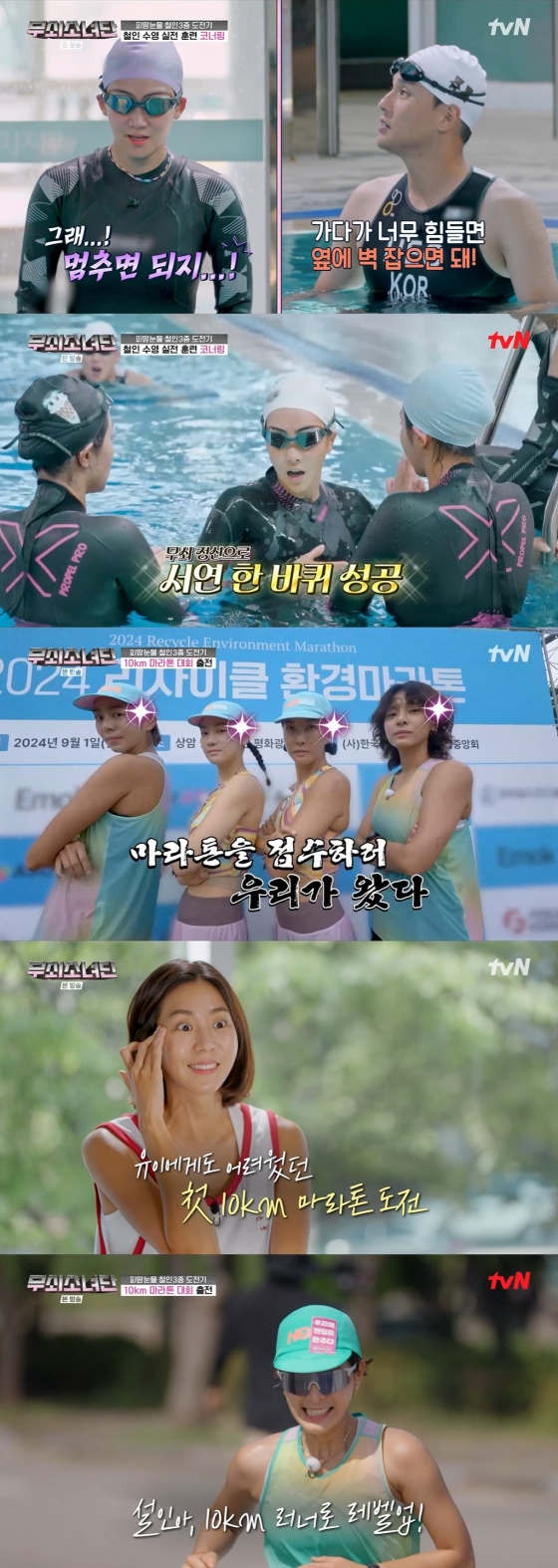 지난 19일 방송된 tvN '무쇠소녀단(연출 방글이)' 7회에서는 진서연, 유이, 설인아, 박주현이 5m 잠수풀의 공포를 이겨낸 실전 수영 훈련과 인생 첫 마라톤 대회 완주로 한 단계 레벨업 했다. 이날 방송 시청률은 수도권과 전국 기준 모두 케이블 및 종편 포함 동시간대 1위를 기록하며 7주 연속 동시간대 1위에 올랐다. (케이블, IPTV, 위성을 통합한 유료플랫폼 기준 / 닐슨코리아 제공)