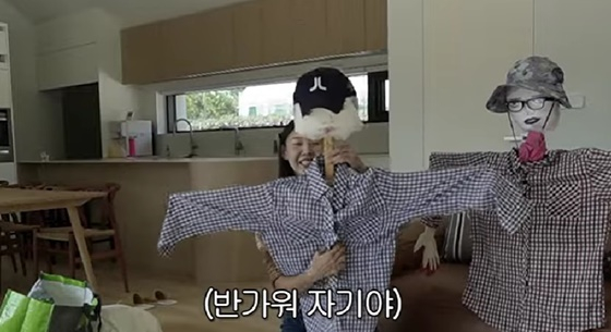 이어 새를 쫓기 위해 "엄마가 허수아비를 만들라고 하더라. 그래서 허수아비를 만들려고 한다"고 전했다. 한혜진은 엄마가 미리 준비해 놓은 재료로 허수아비 만들기에 돌입했다. 허수아비에 직접 화장을 해주고 옷과 모자를 입히는 등 모델 면모를 뽐냈다.