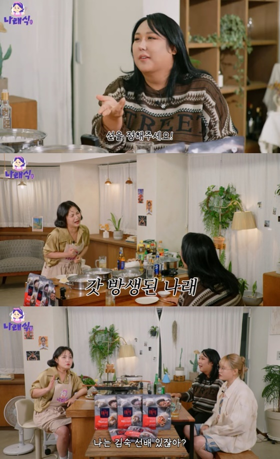당황한 박나래는 "소속사 없이 혼자 활동하지 않나. 나를 보호해 줄 곳이 없다. 나 갑자기 손이 차가워졌다"고 말했다. 이에 풍자는 "나에 대해서 잘 아는 사람이 오면 떨린다. 혜진 언니는 선이 있다. 언니는 내가 미친 걸 알고 있다. 뒤에 오는 사람은 더 미쳤다"고 웃었다.