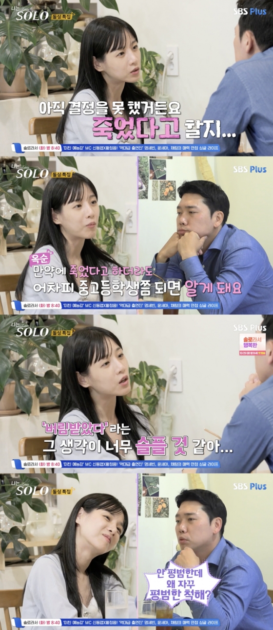 이어 옥순이 경수에게 "만약에 죽었다고 하더라도 어차피 중, 고등학생쯤 되면 (아들이) 알게 된다. 가족관계 증명서를 학교 갈 때 떼지 않냐. '너도 정상적인 관계 속에서 태어났는데 아빠가 너무 힘들어서 떠났어'(라고 하면) 버림받았다는 생각에 (아들이) 너무 슬플 것 같다"라고 자신의 걱정을 이야기했다