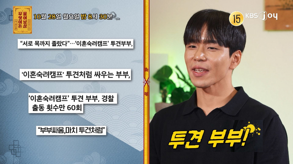 28일 방송되는 KBS Joy '무엇이든 물어보살' 289회에는 JTBC '이혼숙려캠프'에 출연해 화제를 모았던 '투견 부부'의 남편이 출연한다.