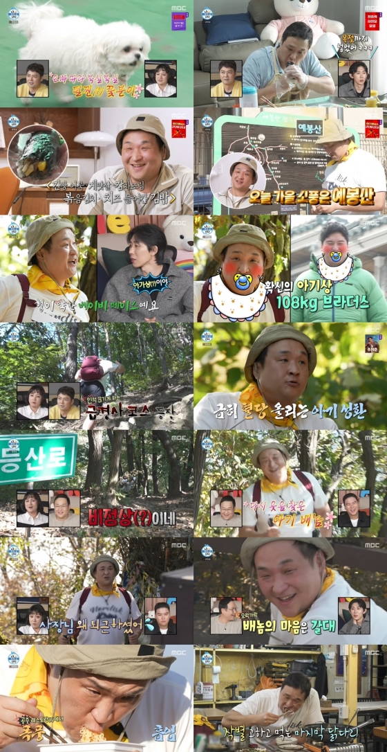 가을 소풍으로 구성환이 선택한 곳은 바로 예봉산. 2년 전 이주승과도 오른 적이 있다며 자신감을 드러낸 구성환은 등산 시작과 함께 마주한 90도 직각 경사에 거친 숨을 내쉬었다. 그는 오르고 올라도 끝나지 않는 오르막에 가다 쉬다를 반복하며 간식으로 에너지를 끌어올렸다. 등산스틱까지 내동댕이 치고 털썩 주저앉아 울음을 터트릴 것 같은 구성환의 모습은 마치 엄마를 잃은 아기를 떠올리게 해 웃음을 안겨줬다.