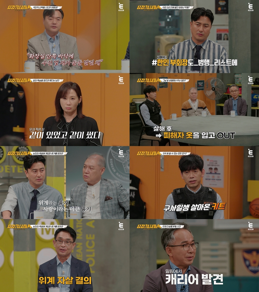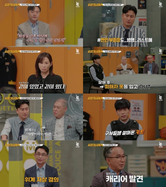 지난 25일 방송된 티캐스트 E채널 '용감한 형사들4' 7회에는 강남경찰서 여청수사팀장 김태곤 경감, 수사 2과 박종호 경위 그리고 과학수사대(KCSI) 윤외출 전 경무관과 김진수 경감이 출연해 직접 발로 뛴 수사 일지를 공개했다.