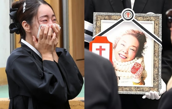 지난 27일 오전 11시 서울 성동구 사근동 한양대학교 장례식장에서는 고 김수미의 발인식이 거행됐다.