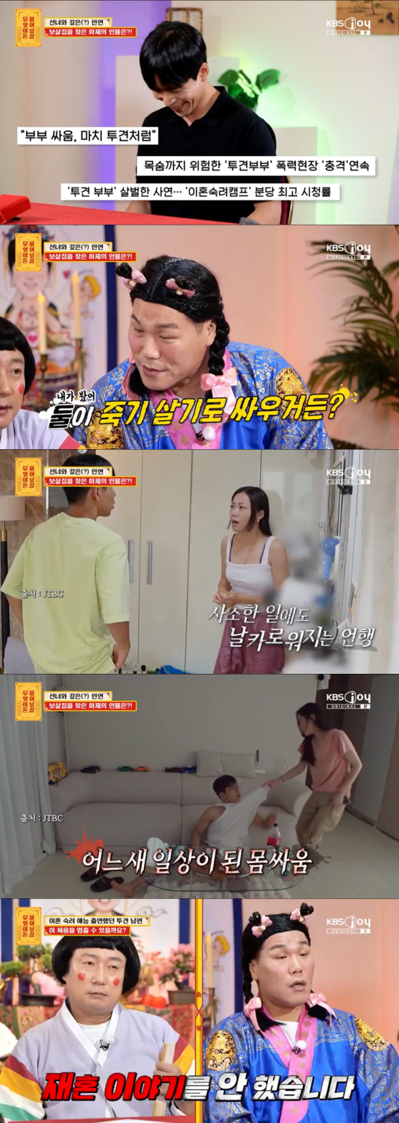 이날 출연한 투견부부 남편 진현근은 최근 JTBC 예능 프로그램 '이혼숙려캠프'에 얼굴을 비췄던 인물로 아내와 눈만 마주치면 싸워 '투견 부부'라고 불렸다.