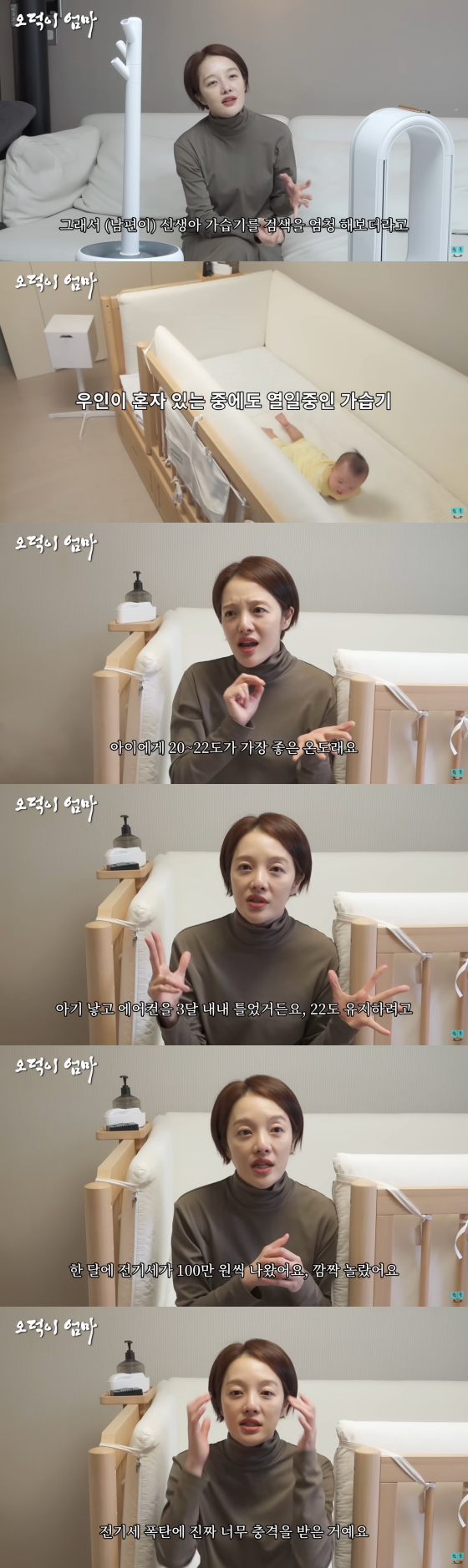 또 "아기를 낳고 실내 온도 유지를 위해 에어컨을 세 달 내내 틀었다. 아기에게 가장 좋은 온도가 20도에서 22도 사이라고 하더라. 올 여름 전기세가 한 달에 100만 원씩 나왔다"고 털어놨다.