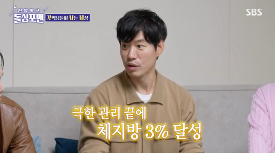 이날 유준상은 "드라마 '경이로운 소문' 촬영할 때 계속 훈련한 다음에 안 먹고 쟀더니 체지방 3%가 나오더라. 만든 게 아까워서 유지 중"이라며 복근을 자랑했다.