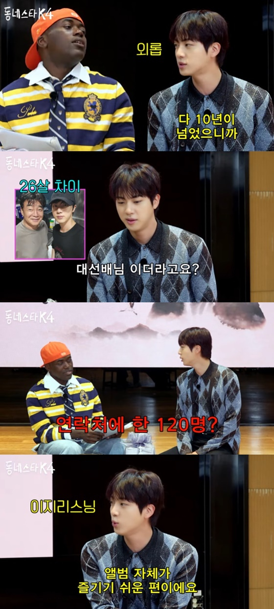 또 군 복무 중인 방탄소년단 멤버 중 제일 먼저 만기 전역한 진은 "처음에 들어갔을 때는 감정을 공유할 사람이 없었다. 제 친구들은 다 10년이 넘었으니까 친구들한테 얘기하면 '나 때는'이 기본으로 나왔다. 병장 달고 군 생활이 편해지는데 멤버들에게 걱정하지 말라고 시간이 지나면 괜찮다고 했다"라며 "군대에서 인기가 많았다. 제가 애들을 혼낸 적이 없다. 저도 10년 넘게 이 업계에서 일해도 모르는 거 투성인데 모른다고 혼내는 구조가 이해가 안 갔다. 모를 수 있다는 생각을 갖고 있어서 굉장히 착한 데다가 돈까지 썼다"라고 말했다.