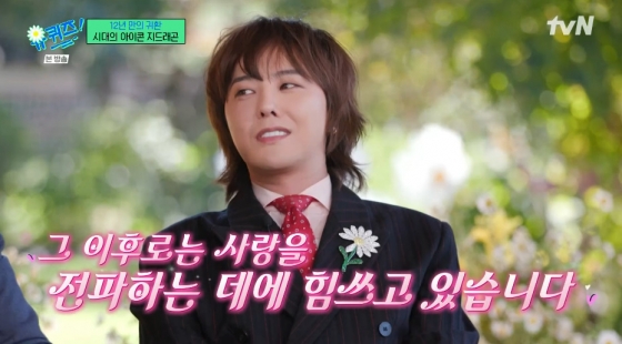 이어 지드래곤은 12년 만의 토크쇼 출연에 대해 "사실 긴장이라기 보다는 너무 뵙고 싶었다. 오랜만이어서 설레는 마음으로 왔는데 차 내리자마자 굉장히 긴장을 시키시더라. 나도 왜 그런지 모르겠는데 콘셉트가 뭐가 있었나보다. 나도 잘 모르겠었다. 나는 인사를 드리려고 했는데 너무 다들 조용하셨다. 그래서 저 끝까지 나도 조심스럽게 왔다"라며 웃었다.
