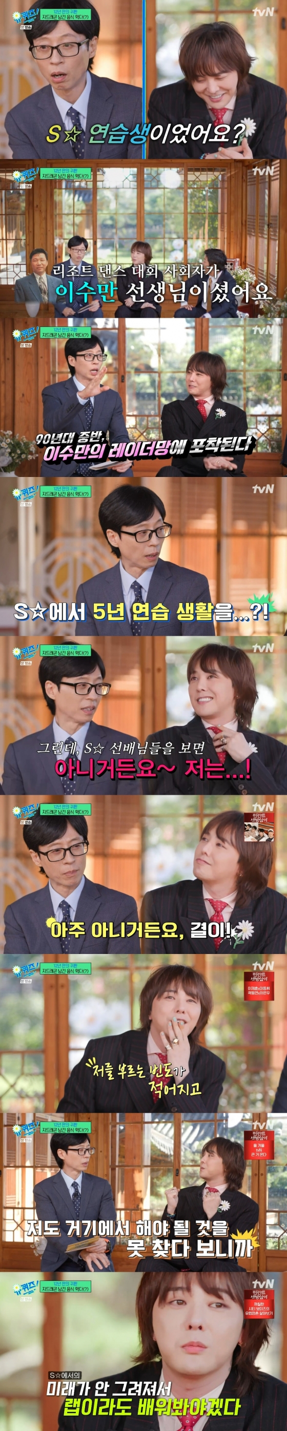 특히 지드래곤은 "그때는 연습생이라는 개념이 없었다. 알아서 자생해야 하는, 언제든 준비가 돼있어야 혹시라도 지나가다가 시켰을 때 보여줘야 한다. 찌르면 나와야 된다"라며 데뷔 전 시절을 회상했다.