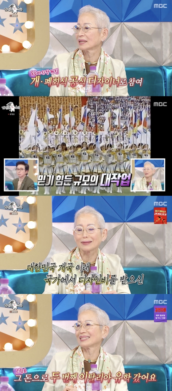 결국 그는 디자이너비를 받게 됐고, 관계자로부터 "대한민국 개국 이래 국가에서 디자이너로서 디자인비를 받은 분. 두고두고 자랑해도 된다"라는 말을 들었다고 전했다. 당시 받았던 금액을 묻는 김구라의 질문에는 "넉넉히 받아서 그 돈으로 두 번째 이탈리아 유학 갔다"라고 답했다.