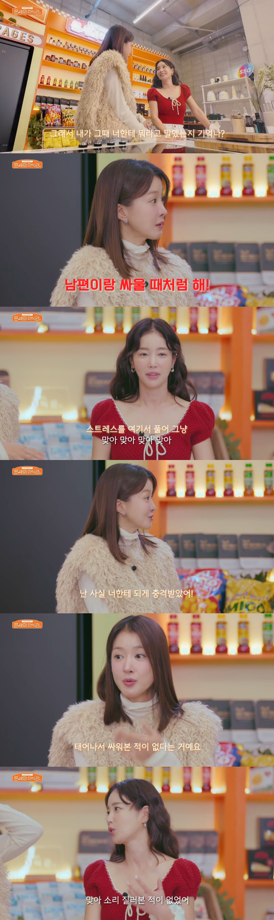 이시영은 기은세를 향해 "그때 내가 너한테 뭐라고 한 줄 아냐"'며 "남편이랑 싸울 때처럼 해. 친구랑 싸울 때처럼 해. 성격대로 해. 스트레스 여기서 풀어. 싸운 적 많잖아'라고 말했다"고 털어놨다.