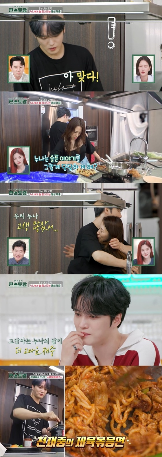 김재중이 막내누나를 안아주고 위로한데 이어, 누나와 조카들이 좋아하는 제육볶음면을 만드는 순간은 분당 시청률 5%를 기록하며 이날 방송 '최고의 1분'을 장식했다. 이날 방송의 시청률은 3.8%로 전주 대비 상승했다. (닐슨코리아 전국)