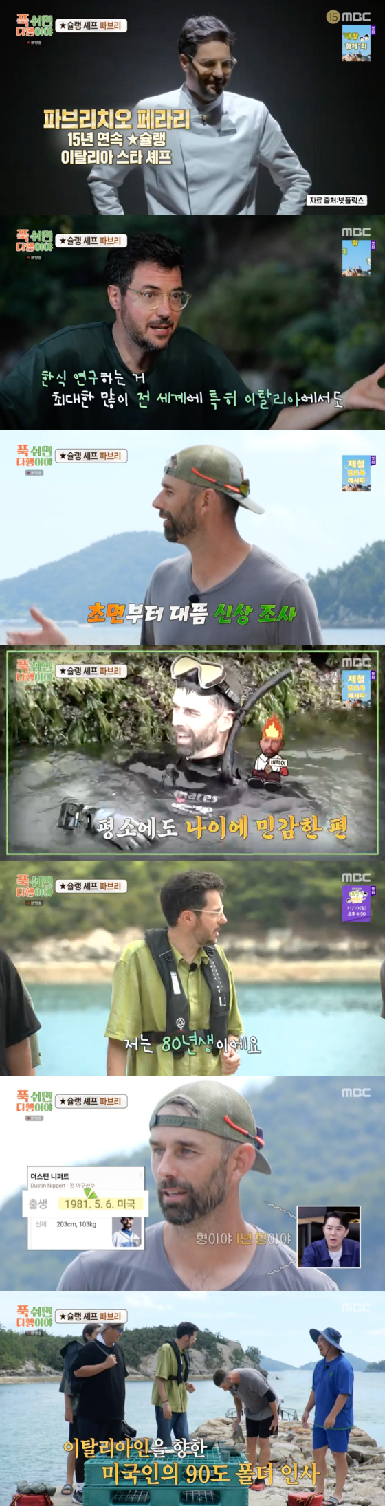 이날 섬에 모습을 드러낸 파브리는 "나는 한식과 사랑에 빠졌다"고 밝혔다.