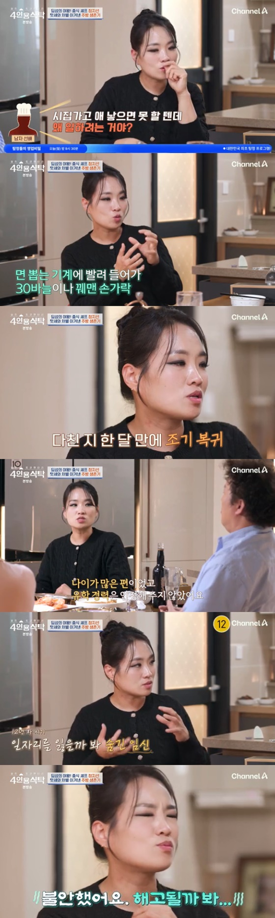 '절친 토큐멘터리 - 4인용식탁'에서 정지선 셰프가 해고가 두려워 임신 사실을 숨겼었다고 고백했다.