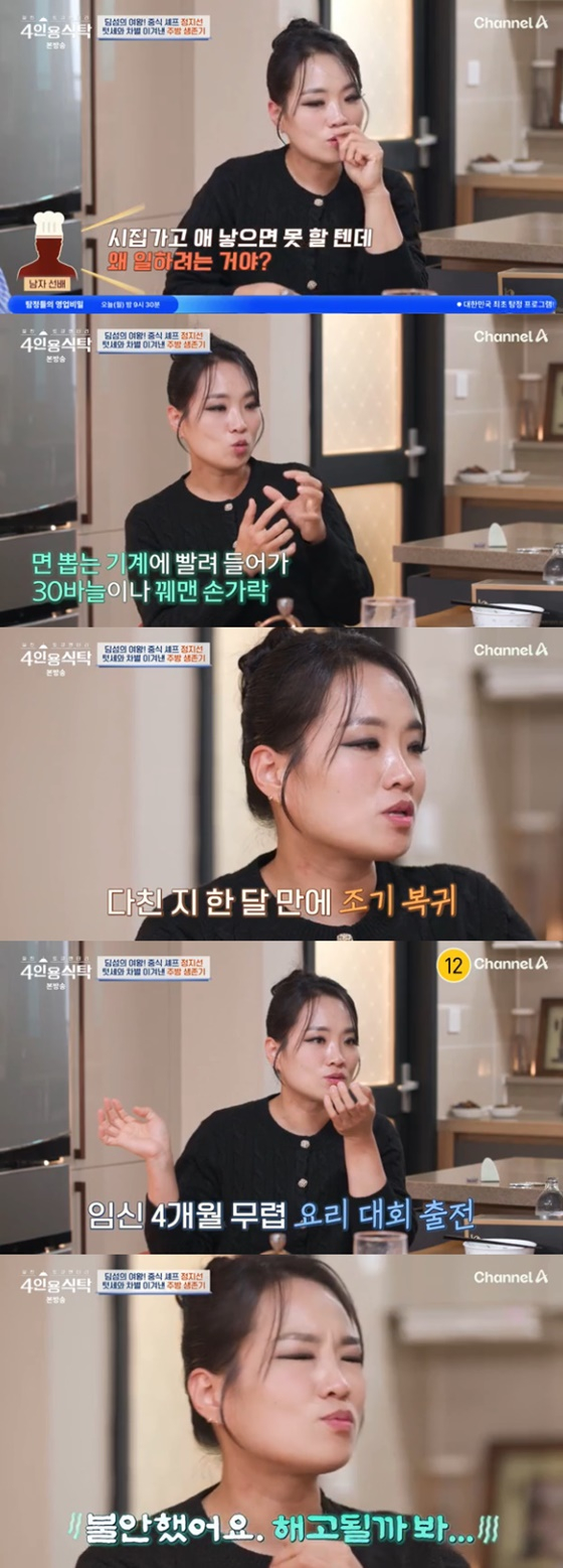 정지선 셰프는 텃세와 차별 속에서 해고에 대한 불안감도 느꼈다고 고백했다.