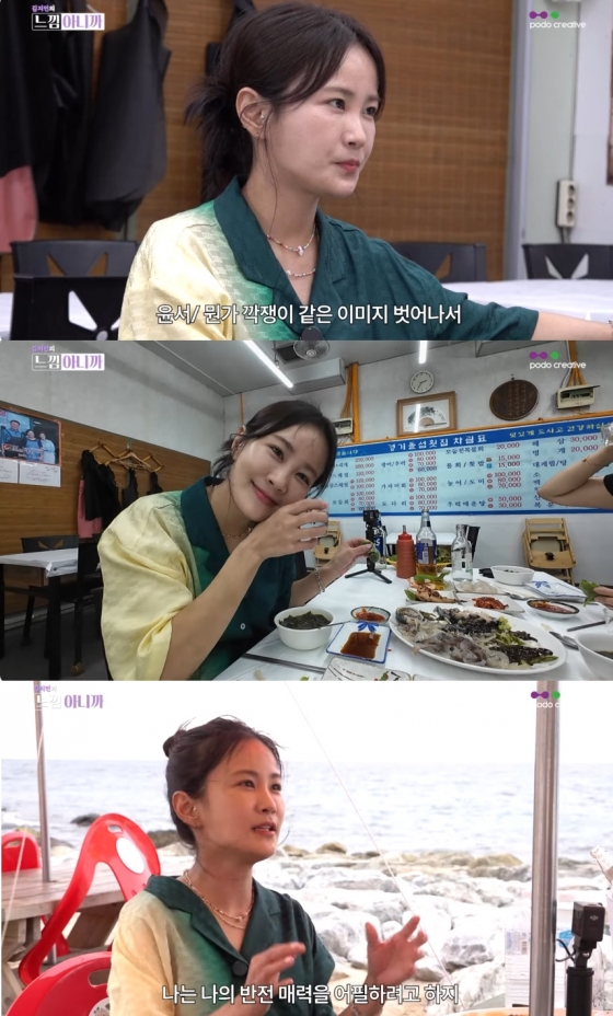 김지민은 지난 7일 공개된 유튜브 채널 '느낌아니까' 4화에서 배우 정이랑, 개그우먼 한윤서와 어달리 해변에서 절친다운 호흡을 뽐냈다.