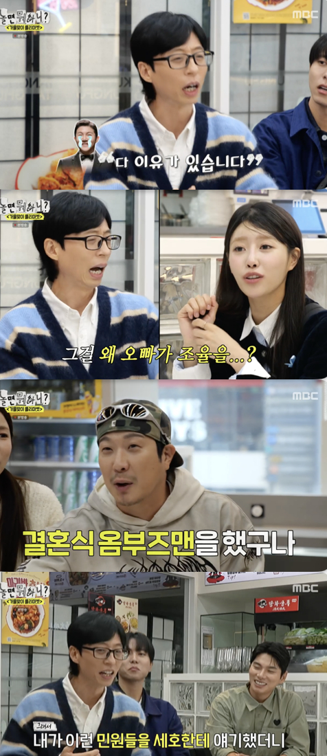 '놀면 뭐하니?'에서 개그맨 유재석이 후배 조세호의 결혼식과 관련한 오해를 대신 해명했다.