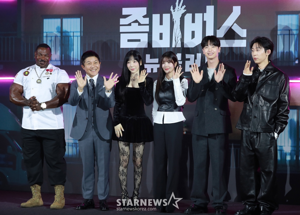 14일 서울시 용산구 CGV 용산아이파크몰에서 넷플릭스 새 예능 프로그램 '좀비버스: 뉴 블러드' 제작발표회가 진행됐다. 행사에는 박진경 PD, 문상돈 PD를 비롯해 출연자인 노홍철, 이시영, 조세호, 태연, 육성재, 딘딘, 코드 쿤스트, 권은비, 파트리샤, 안드레 러시가 참석했다.