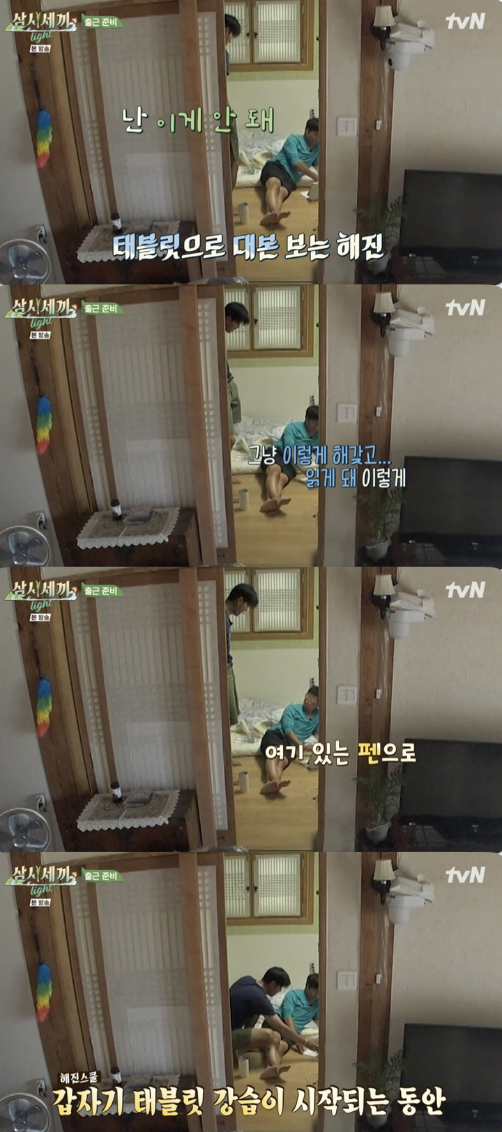 이에 유해진은 "나도 그랬는데 있으면 그냥 이렇게 해서 읽게 된다"라며 능숙히 태블릿PC를 조작했다. 차승원이 "뭘 이렇게 적어놓지 않냐"라고 묻자 유해진은 "여기 있는 펜으로 적는 것"라며 '차승원 맞춤' 태블릿 PC 이용 강습을 시작했다.