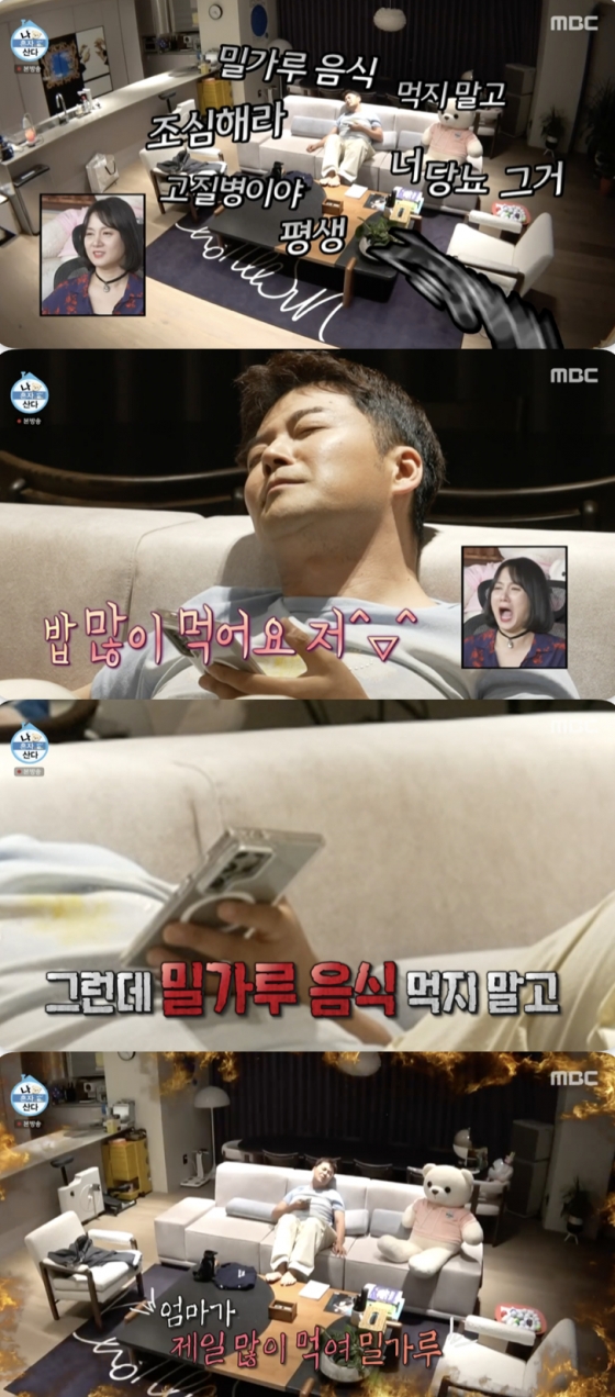 그러나 전현무는 이에 지지 않고 "밥을 안 먹는데 왜 혈당을 조절하라고 하냐. (밀가루 음식 먹지 말라면서) 맨날 산적 같은거 해주지 않냐. 엄마가 밀가루 제일 많이 먹여"라며 하나하나 모두 반박해 모두를 폭소케했다.
