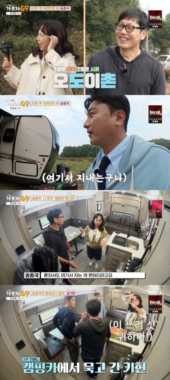 '오도이촌'(5일은 도시 2일은 시골) 생활을 하고 있다는 송종국은 "제가 산에 정착한 줄 아시는 분들도 있는데 저는 그냥 산을 좋아하는 거다. 여기에 집은 없다. 주거지 허가 전이라서 트레일러에서 생활 중"이라며 홍현희, 안정환을 캠핑카로 안내했다. 그는 캠핑카가 7000만 원이라며 "여기 내려온 지 3년 됐는데 처음 땅을 보러 왔을 때 뷰가 너무 멋있더라"라고 말했다.