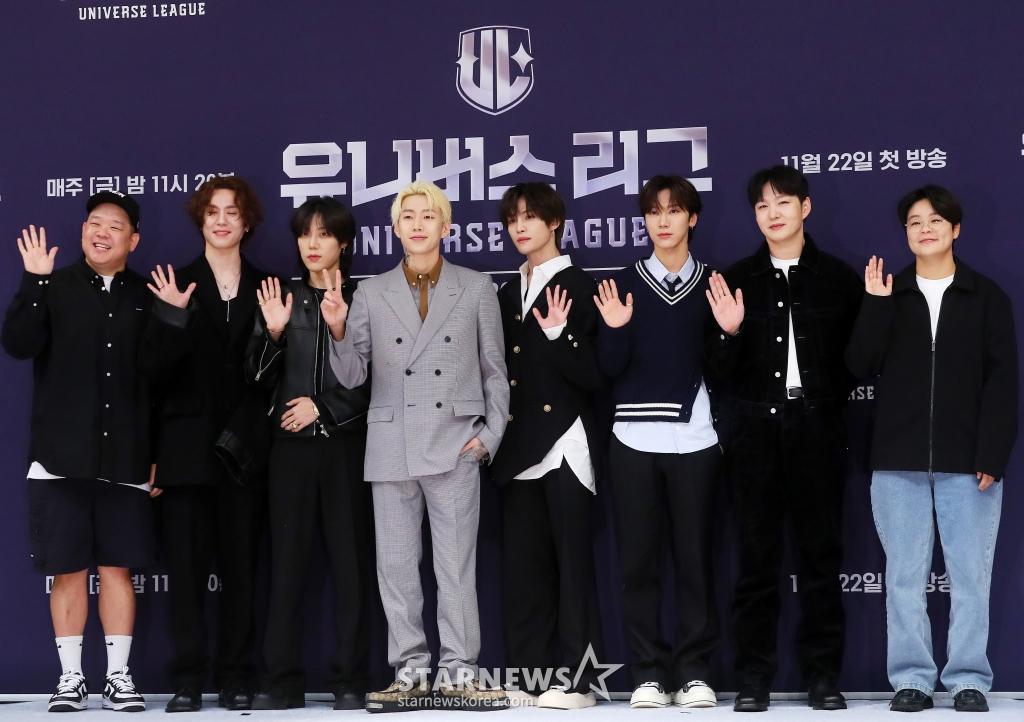19일 서울 양천구 목동 SBS홀에서 새 오디션 프로그램 '유니버스 리그' 제작발표회가 진행됐다. 행사에는 이환진 PD, 유화 PD를 비롯해 가수 박재범, 그룹 비투비 이창섭, 갓세븐 유겸, NCT·웨이션 브이의 텐과 양양, 프로듀서 엘 캐피탄이 참석했다.