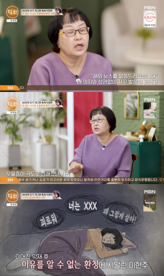 21일 방송된 MBN 교양 프로그램 '특종세상'에서는 80년대 이경실, 박미선과 함께 큰 인기를 누린 이현주가 활동을 중단할 수밖에 없었던 이유를 밝혔다.