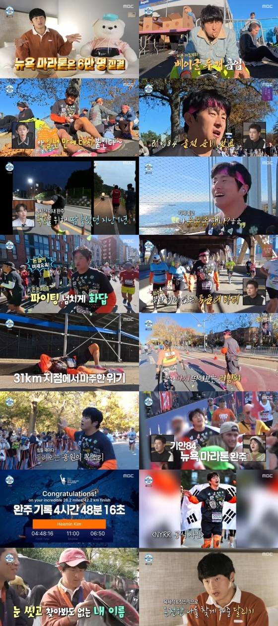 '나 혼자 산다'에서 기안84가 뉴욕 마라톤 풀코스에 도전해 인생 두 번째 풀코스 완주에 성공했다.