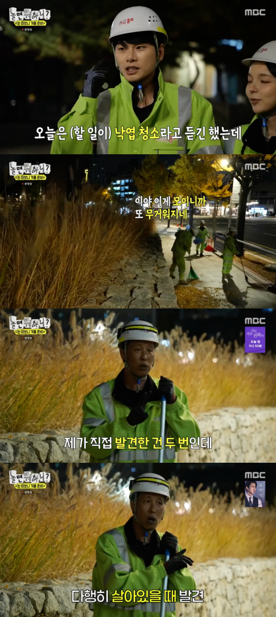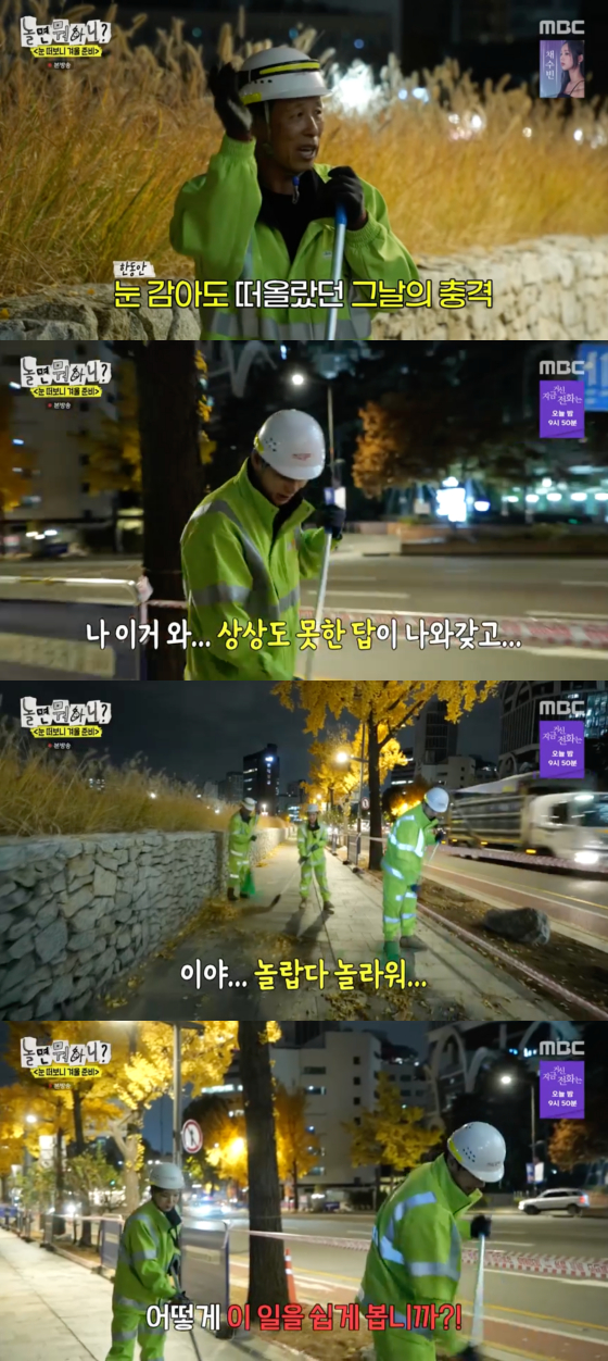 23일 방송된 MBC 예능 프로그램 '놀면 뭐하니?'에서는 환경 공무관에게 낙엽 청소 업무를 배우는 이이경, 박진주의 모습이 그려졌다.