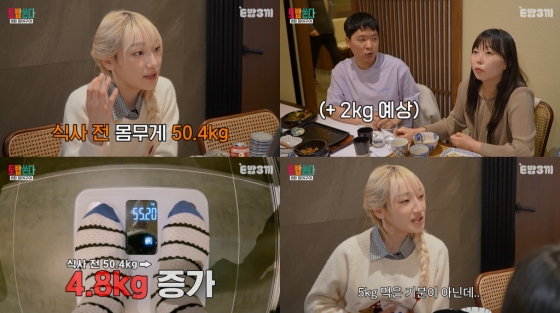 히밥은 "5kg이나 먹은 기분은 아닌데 왜 이렇게 쪘는지 모르겠다. 그 정도 찌려면 배가 불러야 하는데...7kg까지는 먹을 수 있을 것 같다"라며 또 한 번 놀라움을 남겼다.