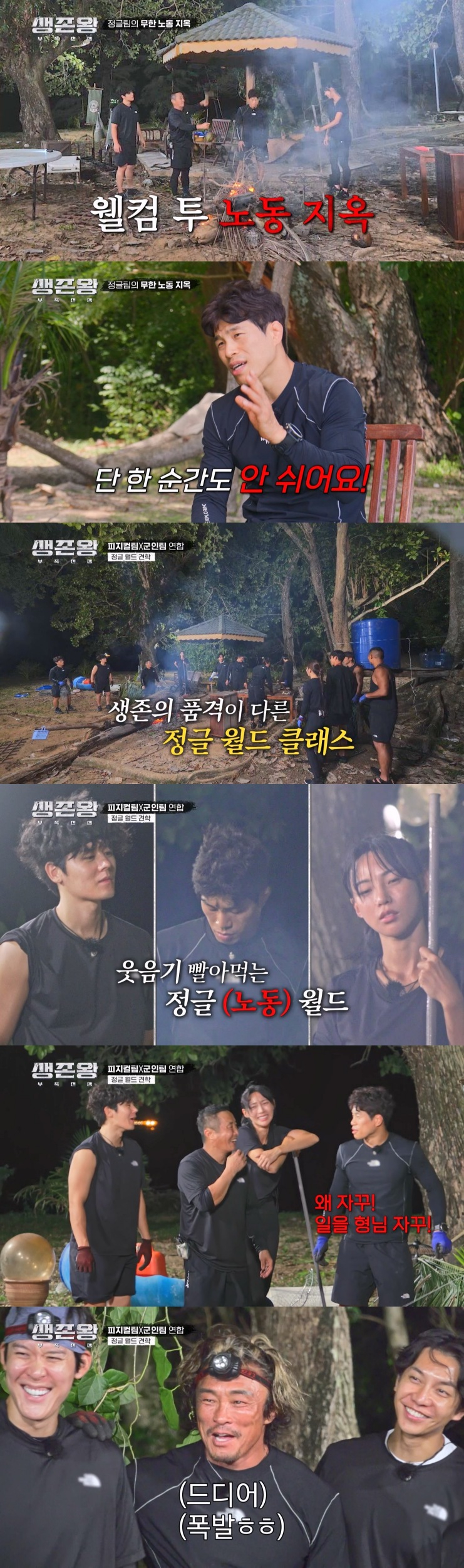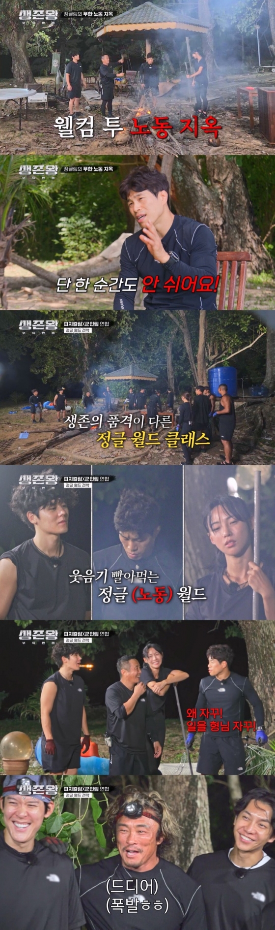 어느정도 집의 모습이 갖춰지자 정지현X김동준X김민지는 휴식을 취하려 했지만, 김병만은 무언가 또 만들기 시작했다. 용병 김민지는 "이 팀은 끊임없이 뭘 만든다"라며 신기해했다. 김병만은 "끝날 때까지 이게 습관이다"라며 무한 노동 지옥을 예고했다. 그러나 계속된 노동에 정지현은 "너무 힘들었다. 병만이 형은 단 한 순간도 안 쉰다"며 고개를 저었다.