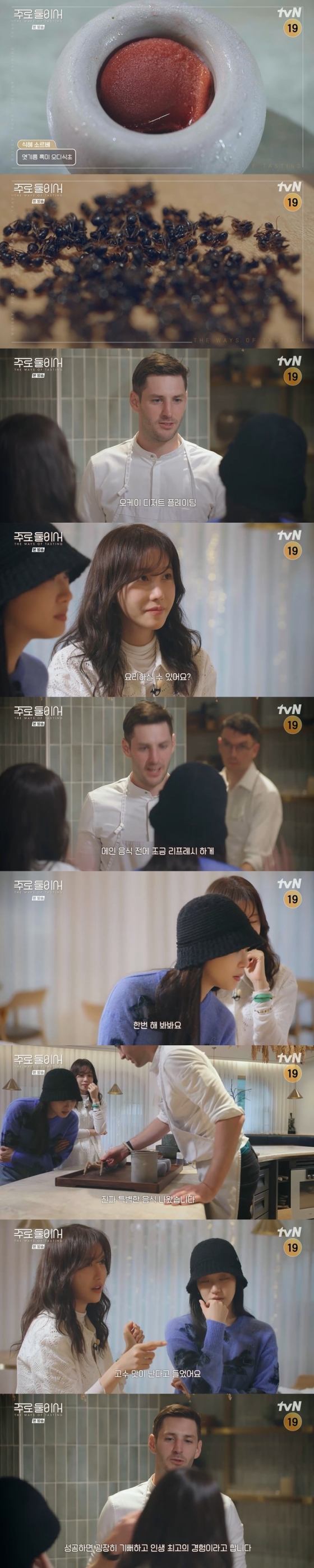 조셉 셰프는 두 사람에게 "혹시 요리를 할 줄 아느냐"며 "식혜 좋아하냐"고 물었다. 이에 김고은은 셰프의 설명에 따라 오디 식혜 소르베를 직접 플레이팅 했다. 이어 개미를 선보인 셰프에게 김고은은 "너무 무섭다"라고 뒷걸음질쳤다.