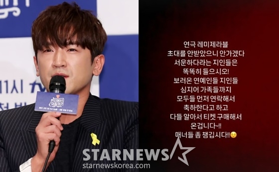 이민우는 25일 자신의 인스타그램에 "연극 '레미제라블' '초대를 안 받았으니 안 가겠다', '서운하다'라는 지인들은 똑똑히 들어라"라고 적었다.