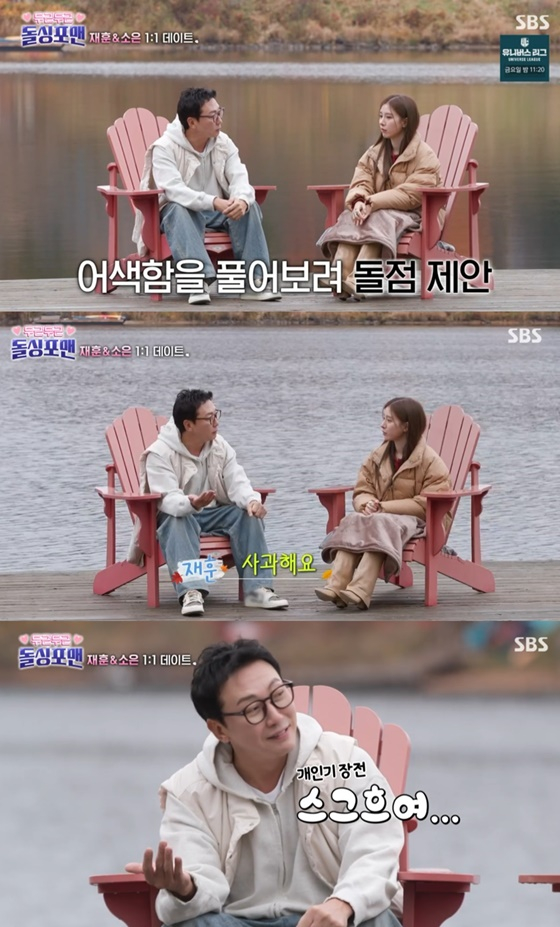 이날 탁재훈은 김소은과 1대 1 데이트 중 어색함을 풀기 위해 "캐나다에서 돌점이 유명하다고 하더라. 그래서 돌멩이 좀 가져왔다"며 흑백 돌을 꺼내 들었다.