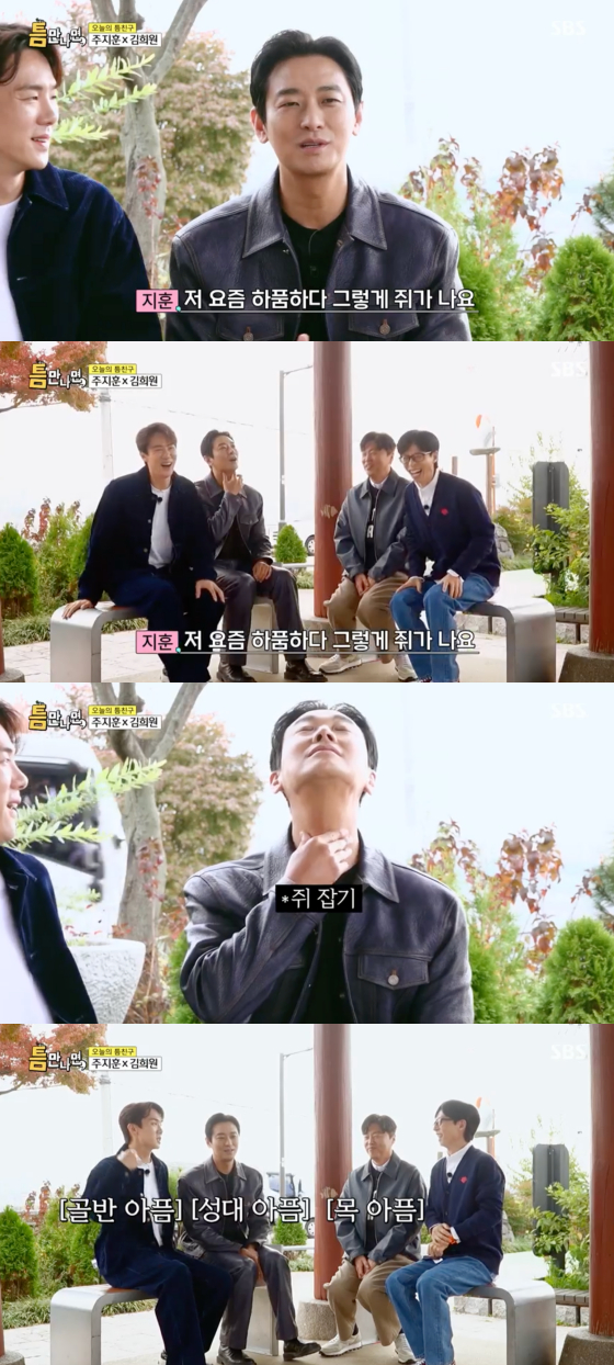 이 모든 이야기를 들은 주지훈은 "그냥 그럴 나이"라며 "자고 일어났는데 어디가 아파도 이상하지 않다"고 해탈한 듯 말해 웃음을 안겼다.