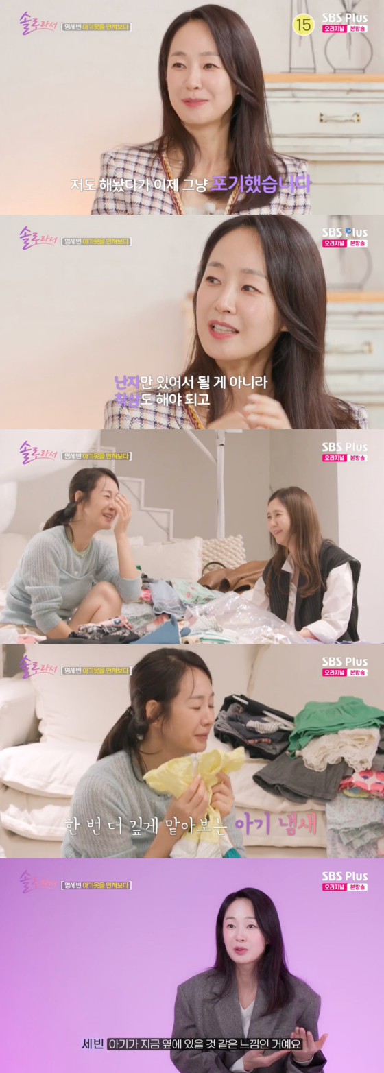 배우 명세빈이 아기 옷을 정리하다 눈물을 터트렸다.