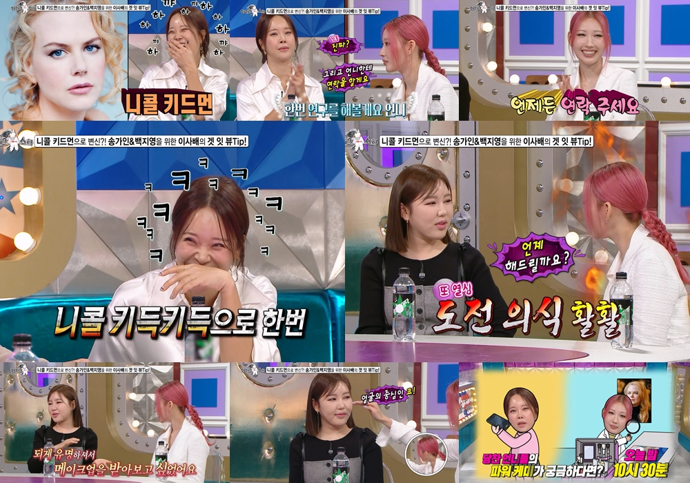백지영은 이사배의 유튜브 콘텐츠를 보고 실질적으로 도움을 많이 받았다며, '이사배를 만나면 어떻게 메이크오버를 해달라고 할까'하고 혼자 생각해 봤다고 밝힌다. 그는 수줍게 '니콜 키드먼'을 언급해 4MC들을 당황케 만든다. "안 될 것 같은 걸 해봐야 되잖아요!"라며 해명(?)하는 백지영과 바로 가능성 측정에 나선 이사배의 모습이 웃음을 안긴다. 이에 장도연은 "니콜 키득키득으로 한 번.."이라고 말해 스튜디오를 웃음바다로 만든다.